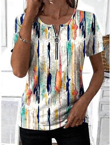Mulheres Camiseta Quarter Zip Gráfico Geométrica Abstrato Tropical Havaiana à moda Manga Curta Gola Redonda Tops regulares Diário Esportes Para Noite Verde Claro Verão Primavera