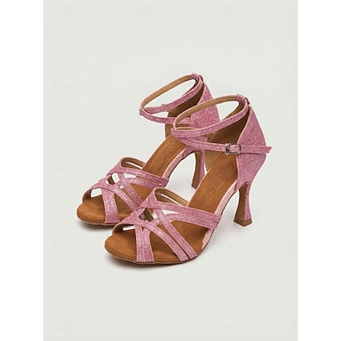 Sapatos de dança latina rosa femininos, com tiras no tornozelo e bico aberto, ideais para salsa, tango e dança de salão. & treinamento