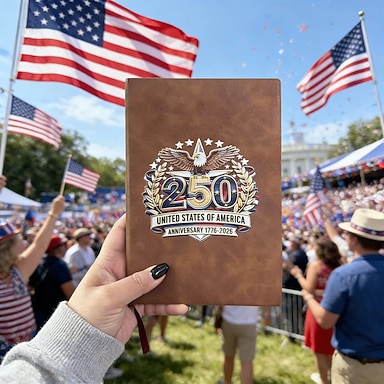 Caderno comemorativo do 250º aniversário dos EUA, EUA 1776–2026, em couro vegano, edição limitada para presente dos 250 anos de liberdade, diário dos patriotas da independência.