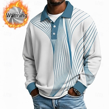 Homens Tiras Horizontais Camisas Polo Camisas Themmal Manga Longa Camisas polo Lapela Casual Roupa Esportiva Feriado Roupa Diária Impressão 3D Outono Inverno Azul Amarelo Verde