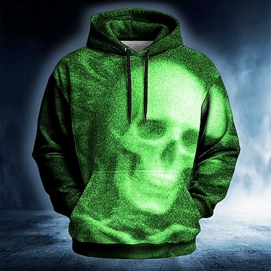 Homens Caveiras Moletons Exagerado Legal Manga Longa Com Capuz Feriado Streetwear Branco Azul Verde Cinzento Com Cordão Impressão 3D Outono Inverno Designer S M L XL XXL XXXL