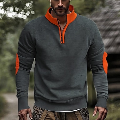Homens Moletom Moletom de lã Moletom com zíper Preto Rosa Cáqui Cinzento Meio Zíper Bloco de cor Patchwork Desportos e Ar livre Diário Feriado Poliéster Roupa de rua Básico Casual Inverno Roupa