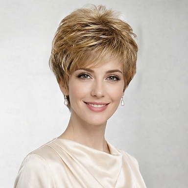 Peruca curta e charmosa para mulheres - corte pixie em camadas loiro natural