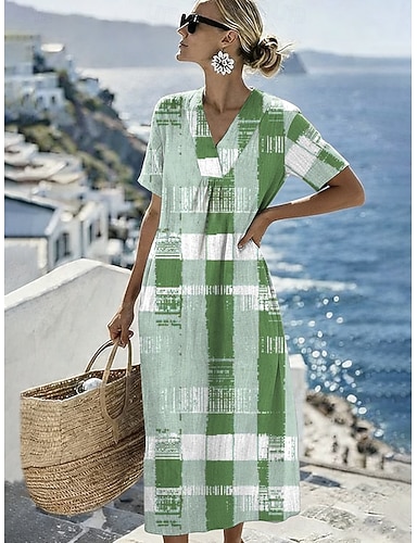 Mulheres Vestido midi Vestido de turno Vestidos Para o Verão Férias Casual Estilo Praia Diário Para Noite Ajuste Largo Gráfico Geométrica Manga Curta Decote V Azul Verde Claro Roxo Verde Verão