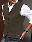 Homens Colete Gilet O negócio Diário Encontro Férias Moda Casual Primavera & Outono Botões Bolsos Poliéster Confortável Tecido Comum 1 Botão Colar de fechamento Normal Cáqui Colete
