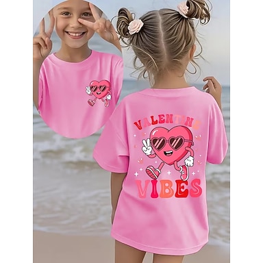 Dia dos namorados Para Meninas 3D Coração Gráfico Camisa Camiseta Manga Curta Impressão 3D Verão Primavera Esportes Moda Roupa de rua Infantil 4-12 anos Gola Redonda Casual Diário Ao ar livre Normal