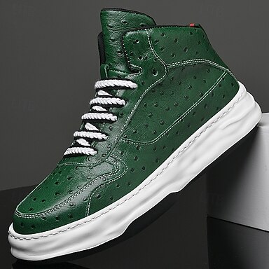 Tênis cano alto masculino em couro sintético verde, qualidade premium, ajuste confortável, estilo urbano, ideal para passeios na cidade.