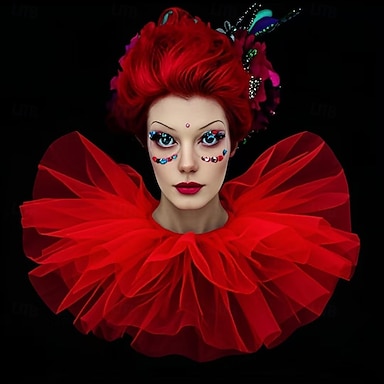 Rococó Vitoriano Renascentista Gola de babados de tule Circo Palhaço Fantasia Unisexo Dia Das Bruxas Carnaval Espetáculo LARP Ren Faire Adulto Colar Todas as Estações