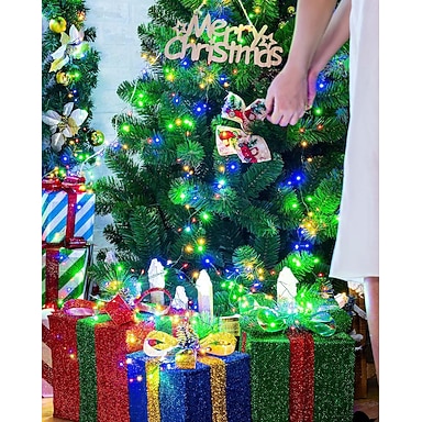 Luzes de corda LED ao ar livre Luzes de corda com alimentação por bateria com controle remoto 8 modos 400-200-100LED Mudança de cor Luzes LED à prova d'água Luzes de fada para decoração de festa e