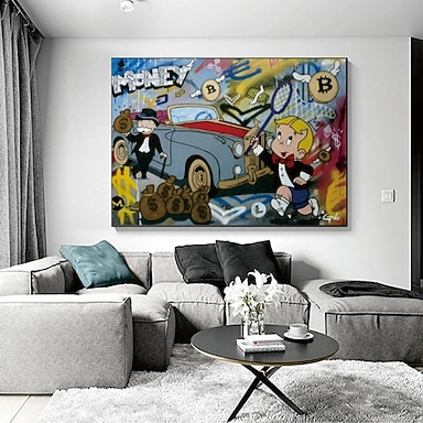 pintura a óleo pintada à mão artesanal parede pintura abstrata moderna alec monopólio arte de rua dinheiro pintura em tela decoração para casa decoração em tela enrolada sem moldura não esticada