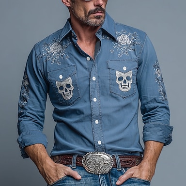 Homens Caveiras Finados Flores Camisa Social camisa ocidental Camisa de caubói Manga Longa Vintage retrô Ao ar livre Feriado Roupa de Trabalho Primavera Outono Aberto para a Lateral Dois bolsos