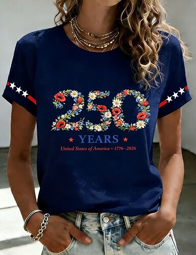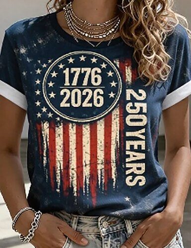 Dia da Independência Aniversário Americano Patriótico Camiseta Feminina Gráfica Bandeira Vintage Estilosa Clássica Manga Curta Gola Redonda Impressão Diária Final de Semana Azul Verão Primavera Outono