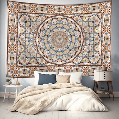 Tecido de Parede Mandala Boêmia Suspensa Arte de Tecido Grande Murais Decorativos Fundo Fotográfico Cobertor Cortina Decoração para Quarto Sala de Estar Casa Azul