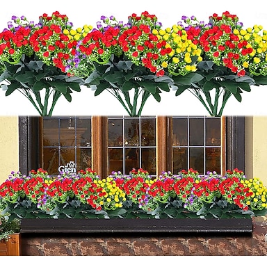 24 ramos de flores artificiais para exterior, resistentes aos raios UV, plantas falsas de plástico, hastes de folhagem de samambaia de Boston artificiais para primavera e verão, jardim interno, pátio,