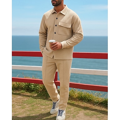 Homens Ternos de paletó Trajes de lazer Botão com bolso Cor Sólida Conjuntos Outono & inverno Preto Branco Equitação Vocação Viagem Manga Longa Esporte Roupas Esportivas Micro-Elástica Normal