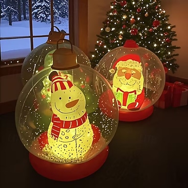 Bola Inflável de Natal de 60cm Gigante PVC Bolas de Natal Infláveis Com Boneco de Neve e Papai Noel Dentro Enfeite Decorado ao Ar Livre Bolas Infláveis para Natal Externo Varanda Decoração de Férias