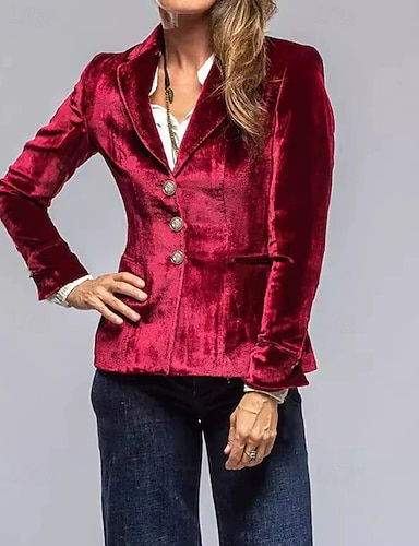 Mulheres Blazers de veludo Confortável Botões Elegante à moda Retro Vintage Trabalho Tecido Trabalho Diário Feriado Para Noite Decote V Ajuste Largo Manga Longa agasalhos Preto Vinho Verde Primavera