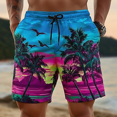 Homens Coqueiro Cor gradiente Plantas Tropicais Calção Justo de Natação Shorts de Natação Bermuda de Surf Cintura Média Roupa de rua Havaiana Férias Bolsos laterais Forro de malha Cintura elástica