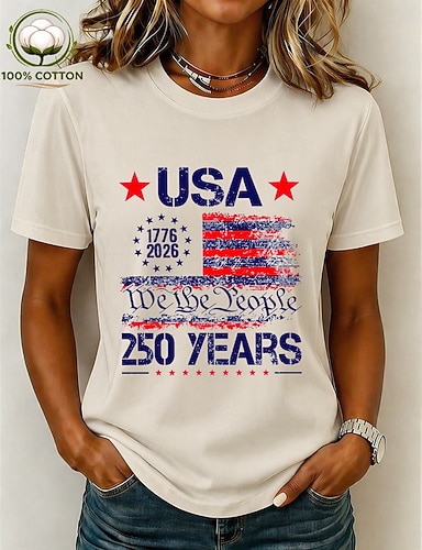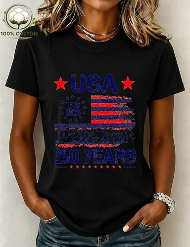 Dia da Independência Americana Mulheres Camiseta Imprimir Gráfico Letra Vintage à moda Clássico Manga Curta Gola Redonda Decote Redondo Tops regulares Casual Diário Azul Preto Branco Vermelho Verde