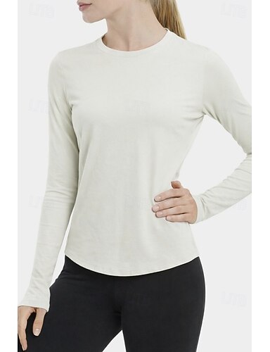 Mulheres Camiseta esportiva Côr Sólida à moda Casual Manga Longa Gola Redonda Tops regulares Ginásio Esportes Final de semana Preto Marfim Rosa Cinza-acastanhado Azul Claro Verão Primavera Outono