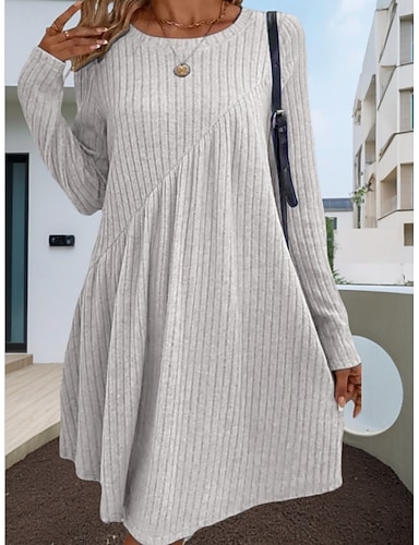 Mulheres Vestido no Joelho Vestido Boho Vestido casual Elegante Moda Moderno Ao ar livre Férias Para Noite Normal Tecido Manga Longa Gola Redonda Preto Vinho Azul Real Cáqui Primavera Outono