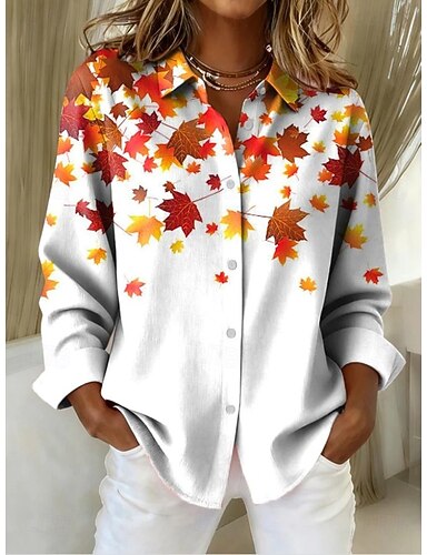 Mulheres Camisa Social Botões Imprimir Floral Gráfico Vintage Tropical Diário Manga Longa Colarinho de Camisa Tops regulares Diário Trabalho Traje formal Branco Laranja Marron Primavera Outono