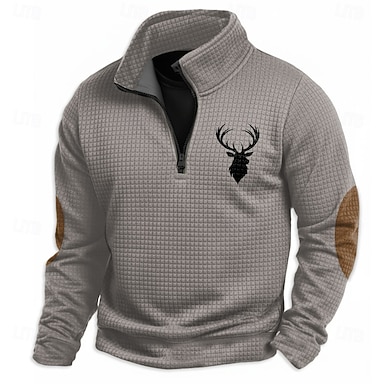 Homens Veado Waffle Moletom Casual Vintage retrô Caça Colarinho Chinês Ao ar livre Casa Presente Preto Marron Verde Tropa Cinzento Zip Up Outono Inverno Designer S M L XL XXL XXXL