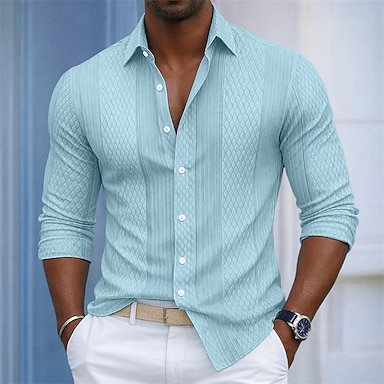 Homens Camisa Social Textura Camisa casual camisa de botão Camisa Jacquard Preto Azul Marinha Verde Damasco Cinzento Manga Longa Tecido Colarinho de Camisa Casual Diário Jacquard Roupa Elegante Moda