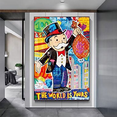 pintura a óleo pintada à mão artesanal parede pintura abstrata moderna alec monopólio arte de rua dinheiro pintura em tela decoração para casa decoração em tela enrolada sem moldura não esticada
