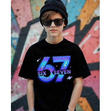 Algodão Infantil Para Meninos Preto Gráfico Gírias engraçadas 67 Camisa Blusa Gola Redonda Manga Curta Ao ar livre Dia a Dia Moda Roupa de rua Designer Estampado Verão