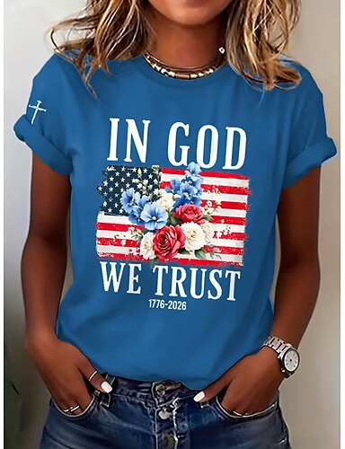 Dia da Independência Americana Mulheres Camiseta Imprimir Gráfico Letra Vintage à moda Clássico Manga Curta Gola Redonda Tops regulares Diário Azul Preto Branco Vermelho Verão Primavera