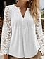 Mulheres Blusa Tops de renda Renda Botões Côr Sólida Elegante à moda Casual Manga Longa Decote V Tops regulares Diário Branco Verão Primavera Outono