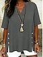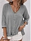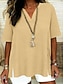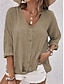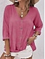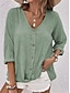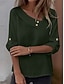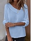 Mulheres Blusa Botões Côr Sólida à moda Casual Manga 3/4 Decote V Tops regulares Diário Azul Rosa Roxo Verde Cáqui Primavera Outono