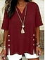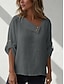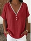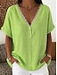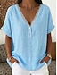 Mulheres Blusa Camisa de linho sintético Botões Côr Sólida Diário à moda Básico Meia Manga Decote V Tops regulares Diário Azul Preto Amarelo Vermelho Roxo Verão Primavera Outono