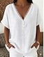 Mulheres Camisa Social Botão para cima Linho de algodão sintético Botões Tecido Diário à moda Básico Manga Curta Decote V Tops regulares Diário Trabalho Feriado Preto Rosa Cáqui Primavera Outono