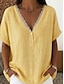 Mulheres Blusa Camisa de linho sintético Renda Patchwork Botões Côr Sólida à moda Casual Manga Curta Decote V Tops regulares Diário Azul Branco Amarelo Vermelho Verde Verão Primavera