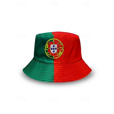 Chapéu bucket masculino reversível em poliéster, estampa da bandeira de Portugal, chapéu leve para torcedores de futebol, ideal para dias de jogo, esportes casuais e atividades ao ar livre.