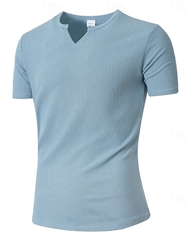 Homens Camiseta Camiseta de malha canelada Manga Curta Gola Redonda Decote V Verão Tecido Pit Strip Moda Designer Esportivo Corte Justo Estriado Casual Férias Rua Preto Branco Azul Claro Top Tee para