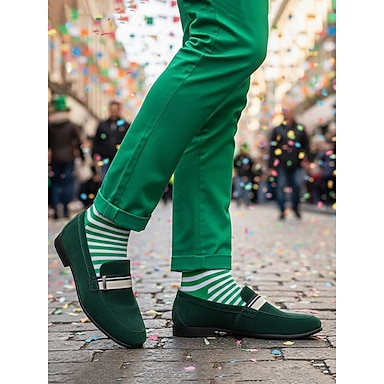 Mocassins masculinos verdes, sapatos de condução leves e fáceis de calçar, mocassins casuais da moda para uso diário, festas e looks para o Dia de São Patrício.