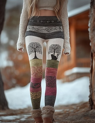 Mulheres Leggings Férias Vintage Estilo Étnico Mimolet Cintura Alta Gráfico Animal Gato Impressão 3D Secagem Rápida Respirabilidade Macio Com Stretch Diário Casa Ao ar livre Preto Cinzento Preto