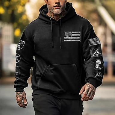 Homens Moletom Preto Verde Tropa Azul Marinha Azul Marron Com Capuz Bandeiras Bolsos Desportos e Ar livre Diário Feriado Poliéster Roupa de rua Básico Casual Primavera Outono Roupa Moletons Moletons