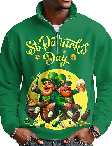 Moletom Masculino Trevo da Irlanda Dia de São Patrício Moda Exagerada Festa Gola Alta Moda de Rua Clube Festa Verde 2 Verde Fechado Outono Inverno Designer S M L XL XXL XXXL