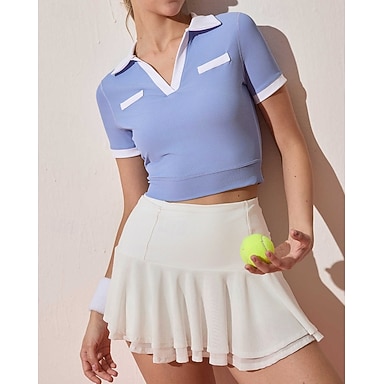 Mulheres Retalhos Camisa Atlético Camisa polo de caminhada Regata Camisa de tênis Manga Curta Elástico Redutor de Suor Respirável Tênis Golfe Pickleball Camiseta Azul Roupas de tênis