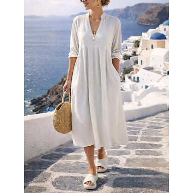 Linha A Longo Vestido floral Vestidos de noite Elegante Diário Floral Manga Curta Decote V Festa de Jardim Casamento Bolsos Organza Jacquard com Pregas Fenda