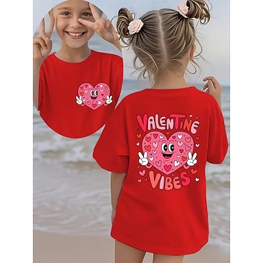 Dia dos namorados Para Meninas 3D Coração Gráfico Camisa Camiseta Manga Curta Impressão 3D Verão Primavera Esportes Moda Roupa de rua Infantil 4-12 anos Gola Redonda Casual Diário Ao ar livre Normal