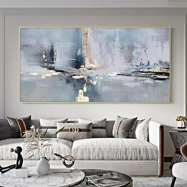 Pintura a óleo abstrata feita à mão em tamanho grande com folha de ouro sobre tela, pintura moderna sem moldura, arte de parede para decoração de casa