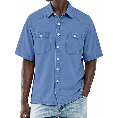Homens Camisa Social Camisa de caubói Camisa 100% algodão com lavagem ácida Azul Preto Roxo Verde Caqui Manga Curta Tecido Lapela Diário Ao ar livre Bolsos Roupa Roupa de rua Casual