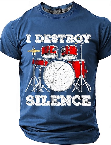 Camiseta masculina "Eu destruo o silêncio" com estampa divertida de baterista, presente para músico, percussionista, banda de rock, estilo vintage desgastado, manga curta, roupa de grife, tamanhos P,