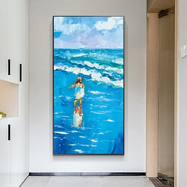 Pintura a óleo pintada à mão arte da parede tamanho grande pintura em tela de paisagem oceano paisagem decoração de casa decoração de tela rolada sem moldura não esticada