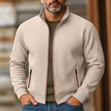 Homens Moletom Preto Branco Verde Tropa Cáqui Cinzento Escuro Colarinho Clerical Tecido Jacquard Patchwork Estriado Textura Diário Feriado Para Noite Poliéster Texturizado Roupa de rua Casual Outono